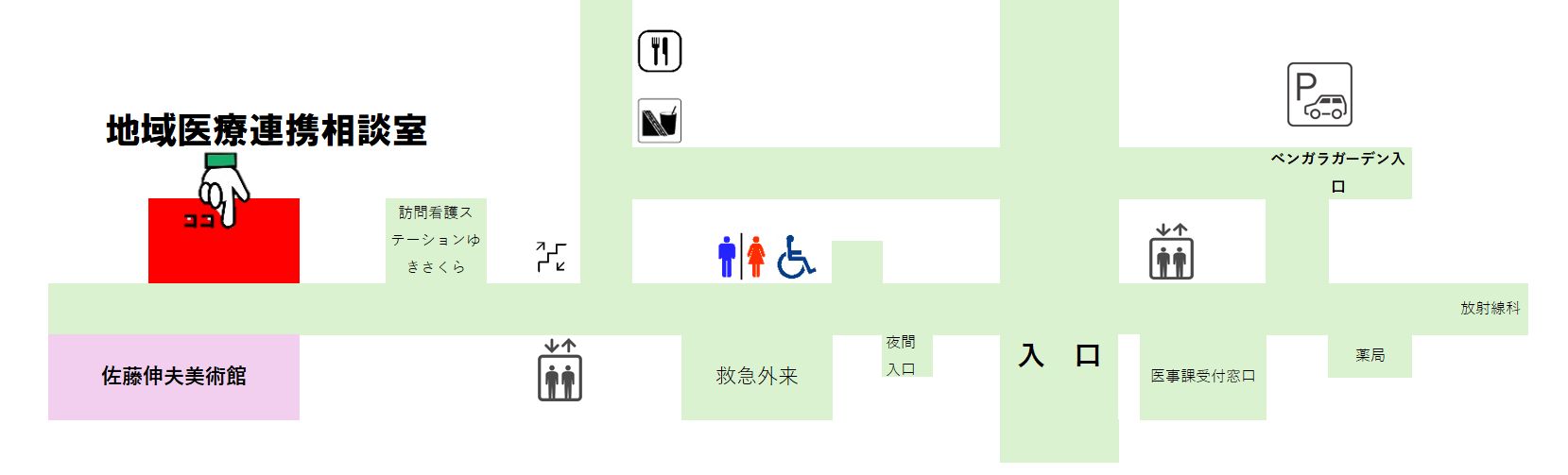 地域医療連携相談室は、患者さんやご家族の治療や療養に関する不安や疑問に寄り添う窓口です。地域の医療機関、介護施設、教育機関、その他関係機関と連携し、安心して暮らせる支援体制を一緒に作ります。紹介・逆紹介や専門医療へのつなぎがスムーズになるようサポートします。
