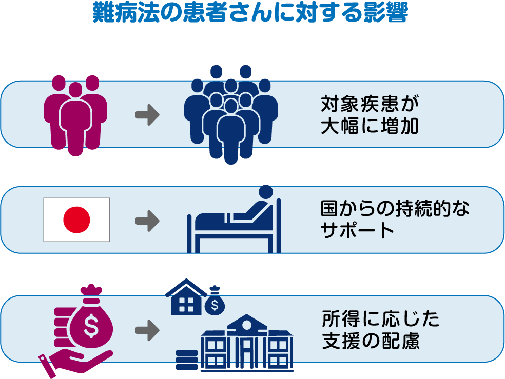 2014年に「難病の患者に対する医療等に関する法律」(難病法)が成立し、2015年1月1日に施行されました。