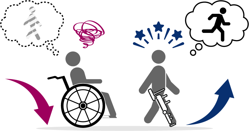 装着した人の動きたいという思いを読み取って、正しい動きをサポートしてくれる新しい仕組みのロボットなのです。HAL によるサポートを得ながら歩行訓練を繰り返すことで、HAL を脱いだ状態でも動作や歩行機能が改善することがわかっています。