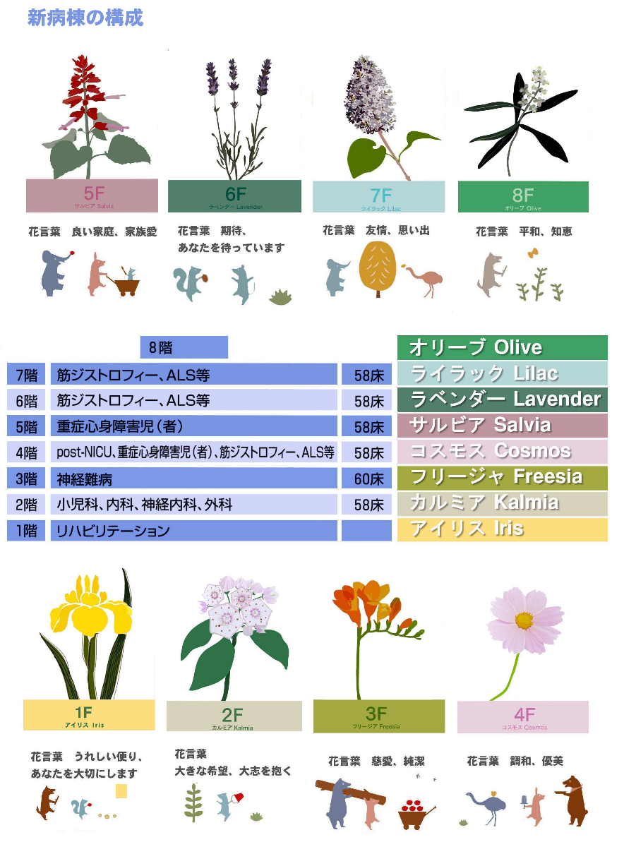 外観は弁柄色という北欧の住宅でみられる塗装が施されており、柏崎の空と海にマッチした色合いとなっております。内装につきましても、色と花を各階毎に設定し、デザインも「北欧の風、森の香り」をコンセプトとしており、病室内や廊下に施したアートが患者さんに癒やしを与えます。