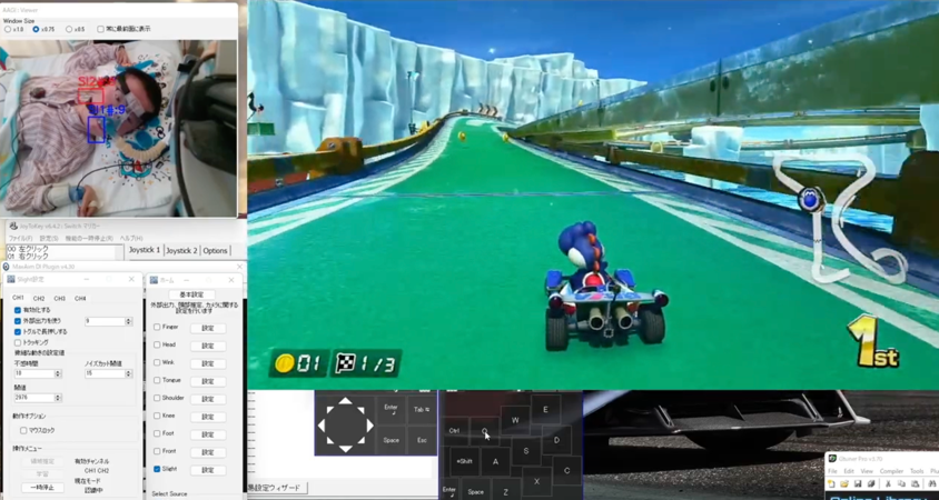 例えば、国立病院機構新潟病院に入院中の30歳代の使用者(デュシェンヌ型筋ジストロフィー)はパソコンのレースゲームの「マリオカート」を通信対戦モードで行い、世界中からの参加者を募ったり、妹さんと20年ぶりにレースを行ったりして、身体障がいを克服して活動できることを実感しています。