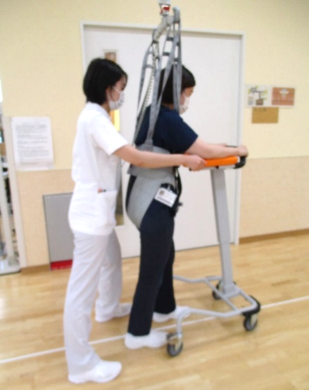 また、天井走行リフトを使用して転倒予防を行いながら起立、歩行練習を行うことが可能です。