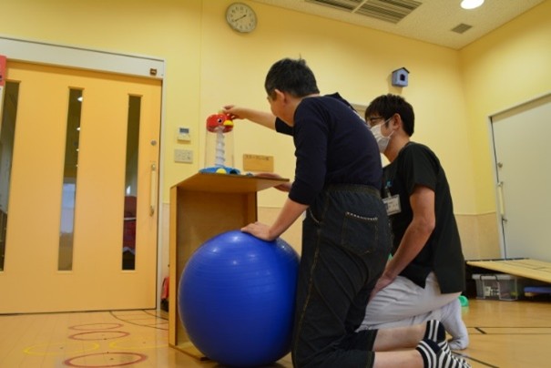 身体機能維持・向上のため、ストレッチや姿勢の検討・ポジショニング、自己表現手段や新たな趣味活動開発などを行っています。