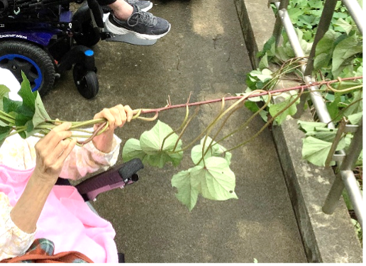 コロナ禍の令和4年から院内敷地内の体験エリアとして菜園「ゆめふぁーむ」を始めました。野菜や植物を患者さんと栽培し、水やりや収穫、鑑賞などに来てくださる患者さん方も増え、賑わいがうまれました。