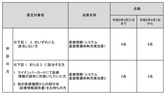 上記体制の整備により、令和5年3月30日より下記のとおり初診料の加算を算定いたします。
